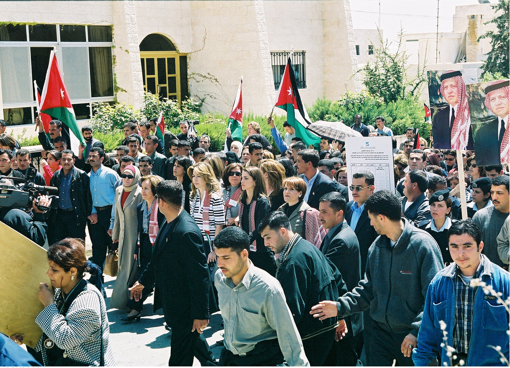 Participates in a human rights march organized by the Jordan River Foundation in support of families in the Palestinian territories