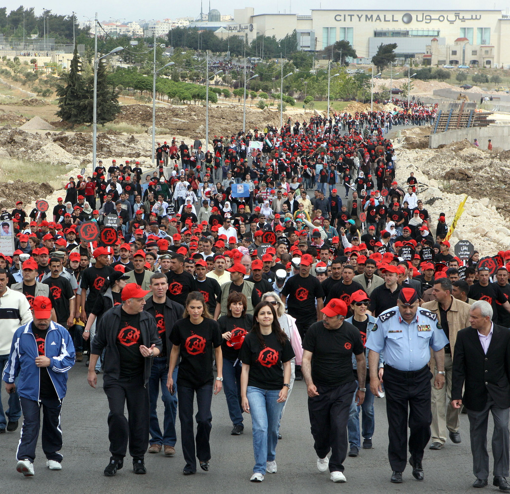 Walks alongside thousands of Jordanians during the 'Kafa' Awareness March, organized by the Royal Health Awareness Society (RHAS) to raise awareness on the prevention of traffic accidents