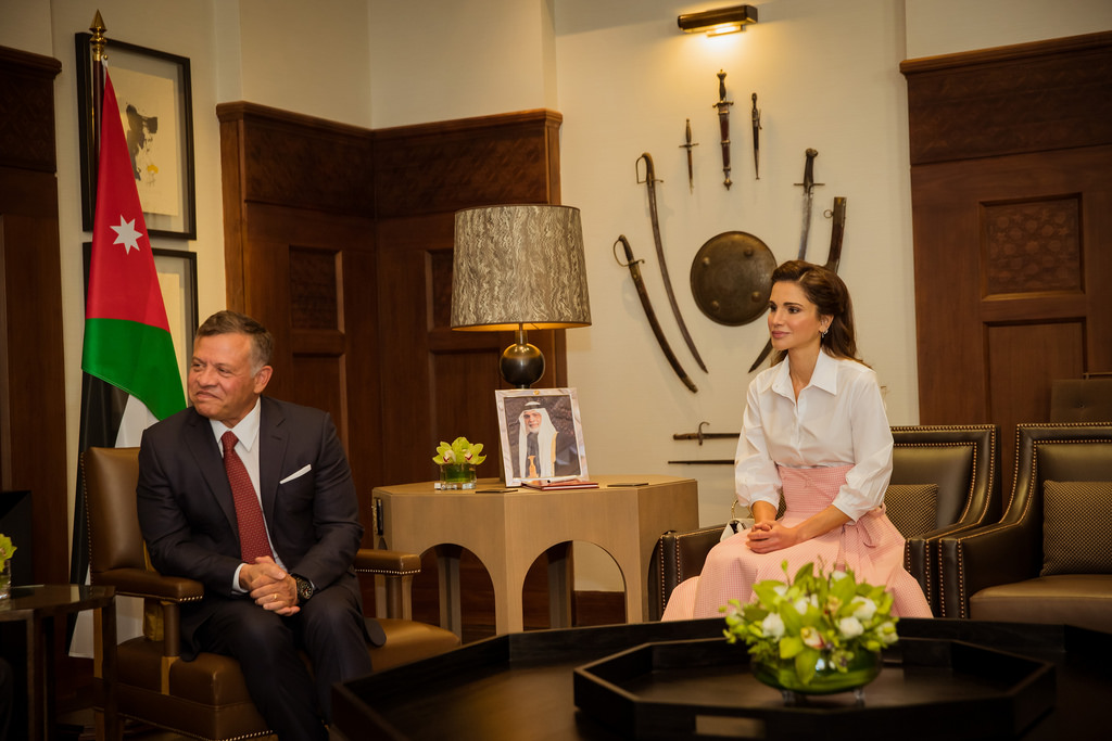 Their Majesties King Abdullah II and Queen Rania during the official welcoming ceremony of Austrian President Alexander Van der Bellen, and his wife First Lady Doris Schmidauer
