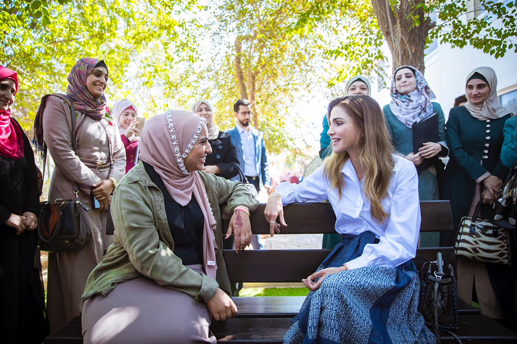Queen Rania meets with the second cohort of the Teacher Education Professional Diploma during a visit to the Queen Rania Teacher Academy