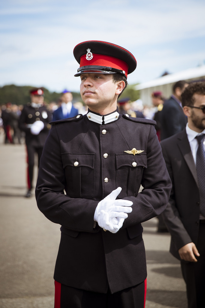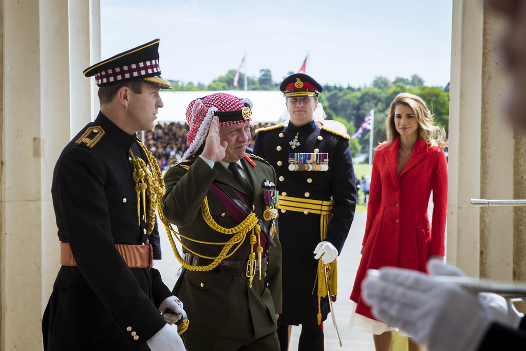 جلالتا الملك عبدالله الثاني والملكة رانيا العبدلله خلال حفل تخرج ولي العهد سمو الأمير الحسين من كلية ساندهيرست العسكرية