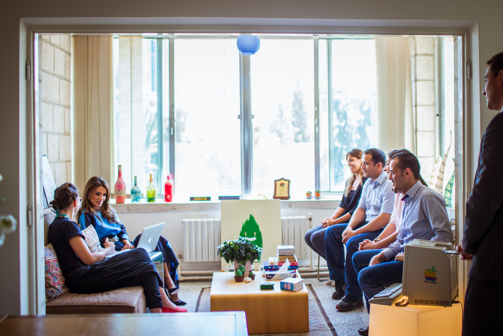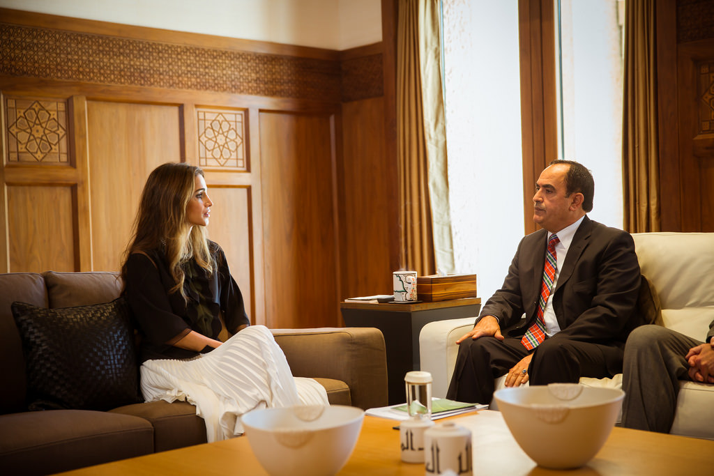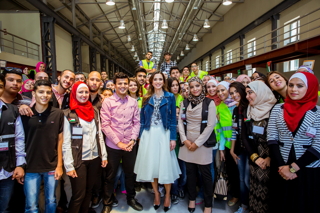 Her Majesty Queen Rania Al Abdullah during a meeting with a group of young entrepreneurs and beneficiaries of tasmeemMe.com.