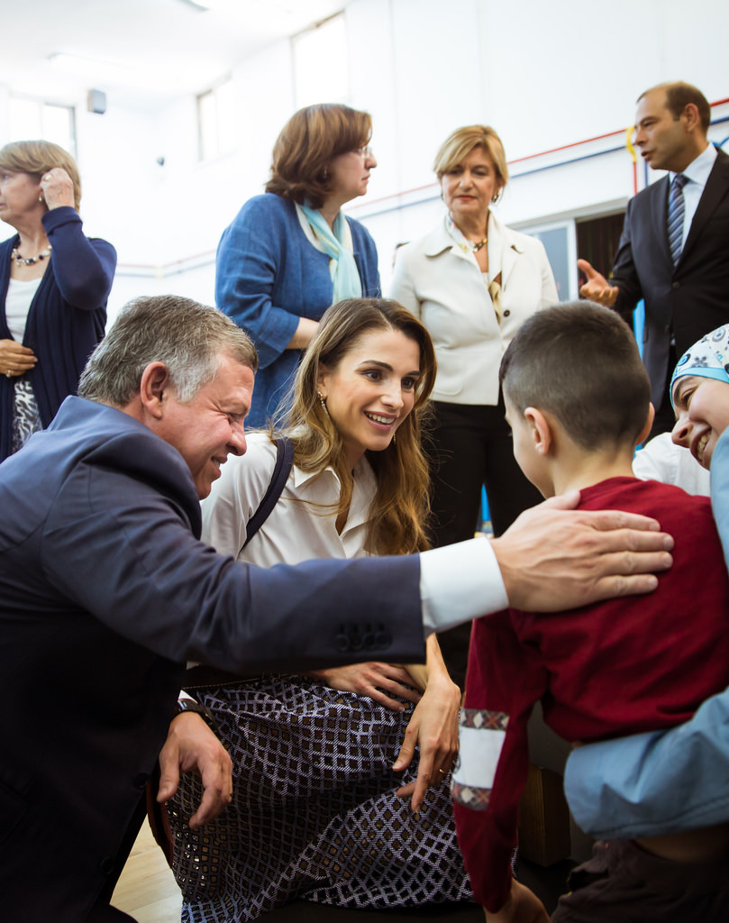 جلالة الملك عبدالله الثاني وجلالة الملكة رانيا العبدالله خلال زيارة إلى جمعية الحسين- مركز الأردن للتدريب والدمج .