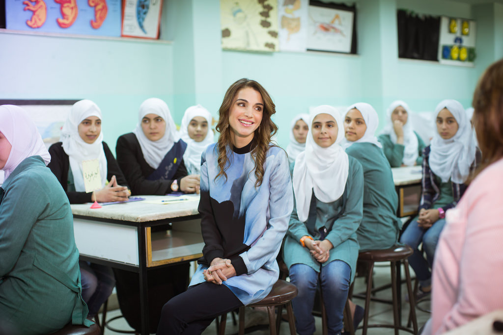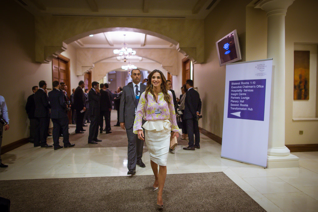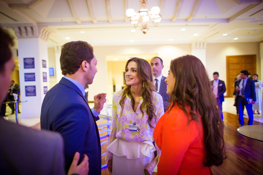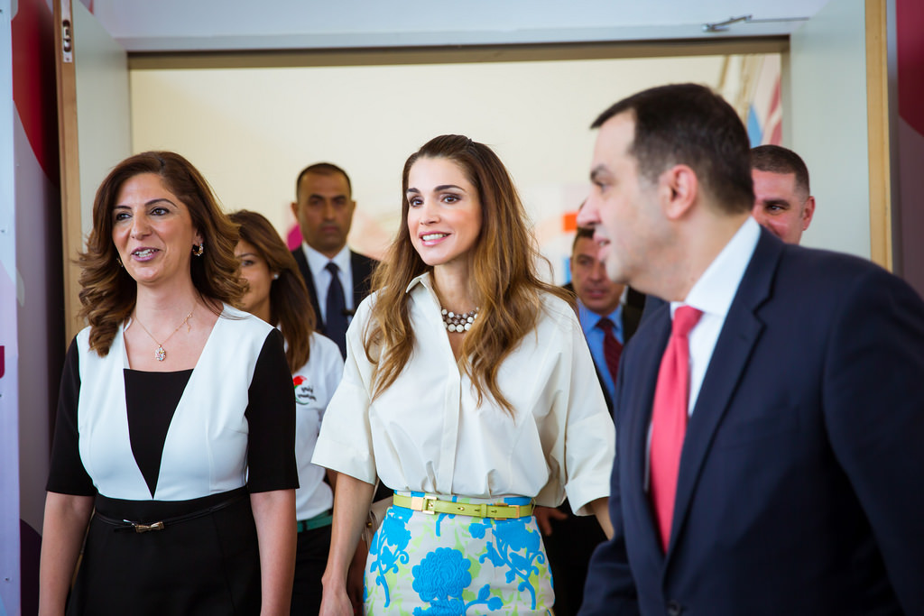 جلالة الملكة رانيا العبدالله خلال جولة في المعرض السنوي لصندوق الملك عبدالله الثاني للتنمية والذي أطلق تحت شعار: مواطنون فاعلون .. قادرون على الابتكار .. مؤهلون للعمل.