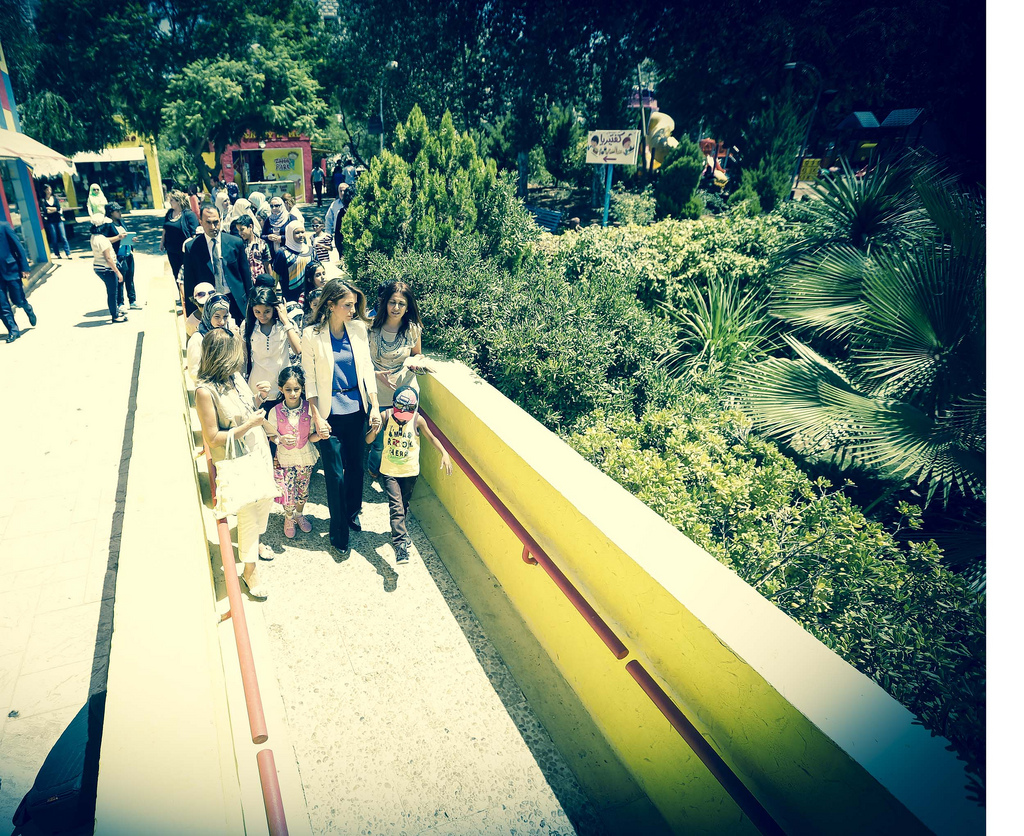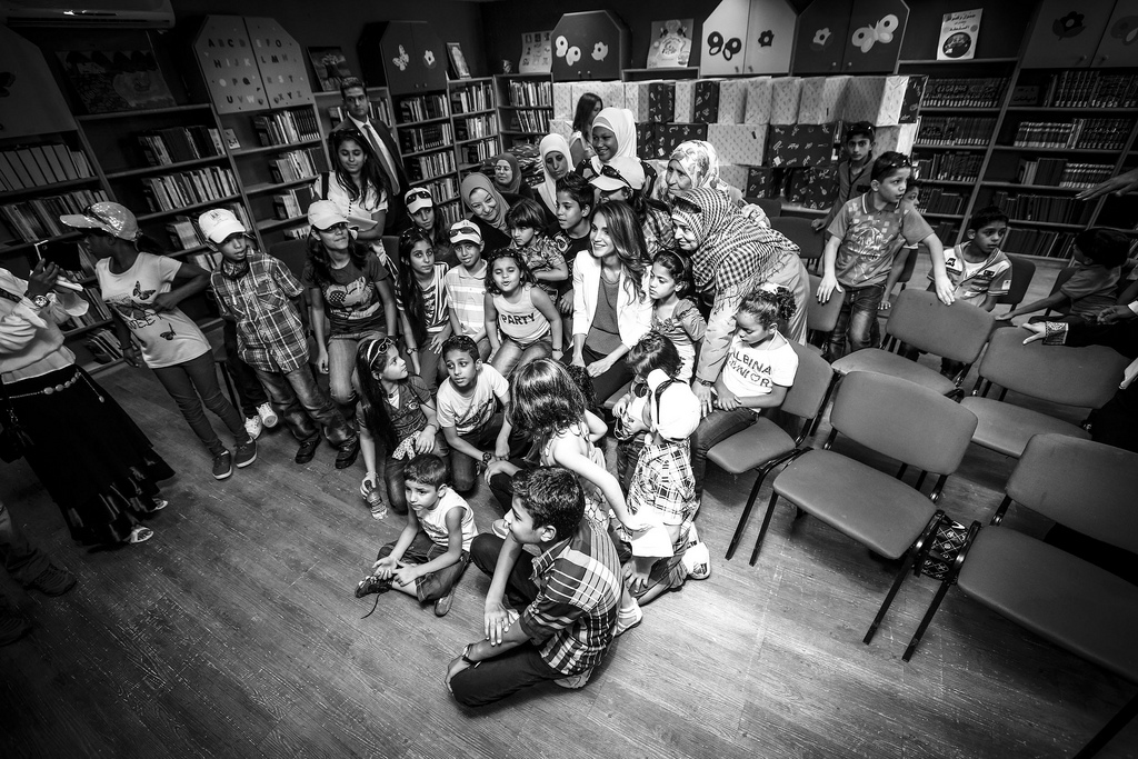 Queen Rania with SOS Village- Aqaba children at the Zaha Cultural Center.