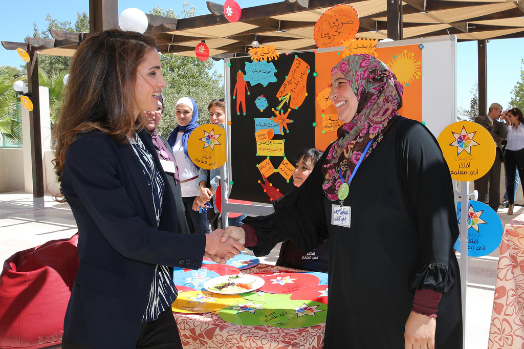 جلالة الملكة رانيا العبدالله تحضر جانبا من فعاليات برنامج "افتخر اني معلم" الذي نظمته مبادرة (مدرستي) في فندق غصن الزيتون بعجلون لنحو 65 معلمة من 18 مدرسة مشمولة في المبادرة من محافظة اربد.