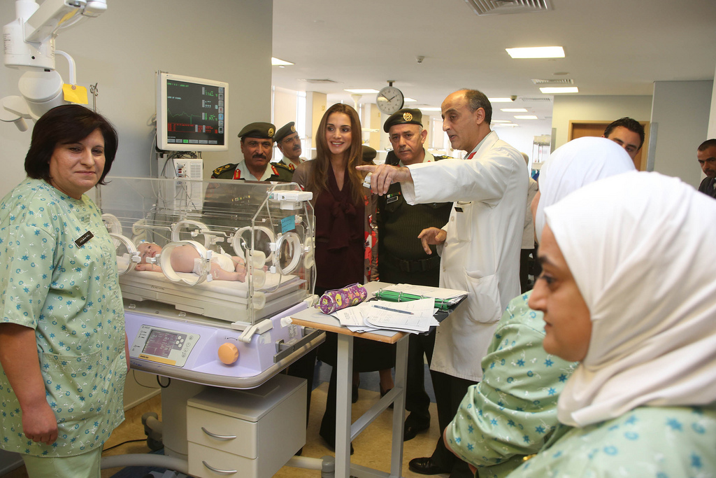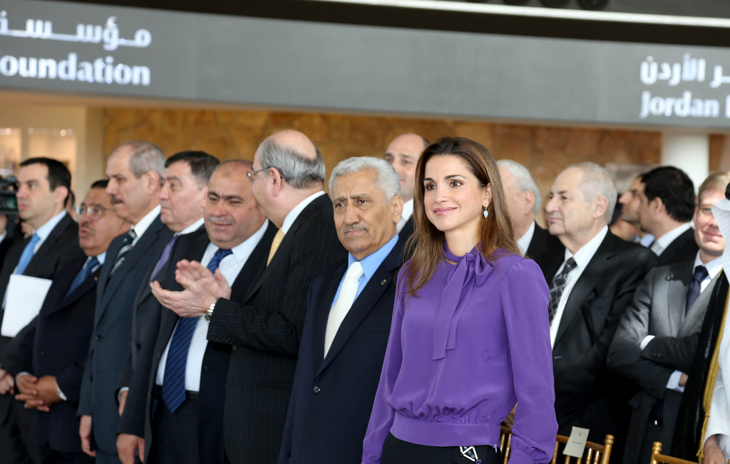 Her Majesty Queen Rania Al Abdullah during a visit to Al Ma’mounieh Secondary School for Boys, the first boy's school in the Kingdom to receive the gold accreditation in the Healthy School Accreditation Program.