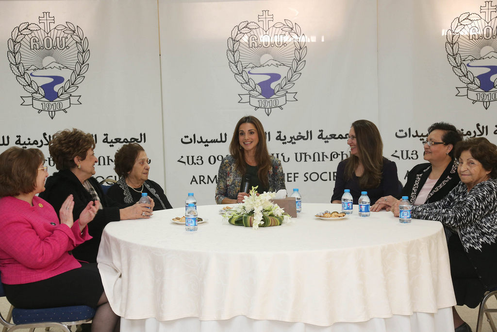 Her Majesty Queen Rania Al Abdullah meets with board members of Rmeil Charitable Society and local residents of Rmeil village.