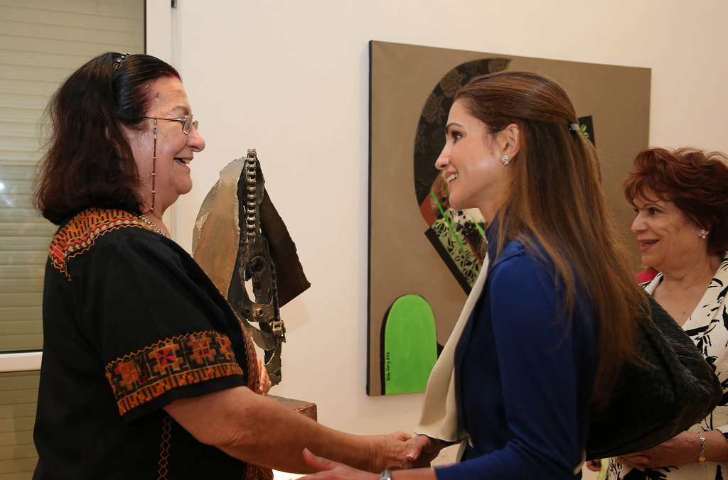 Her Majesty Queen Rania Al Abdullah with HRH Princess Wijdan bint Fawaz at the inauguration of the “70 Years of Jordanian Contemporary Arts” exhibition.