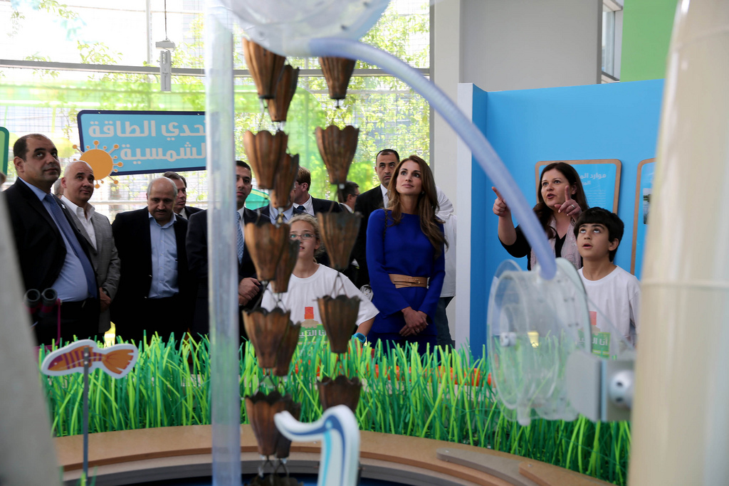 Her Majesty Queen Rania Al Abdullah launches the new "I Am Change" exhibit at the Children’s Museum- Jordan which aims to raise children's awareness on water and energy conservation.