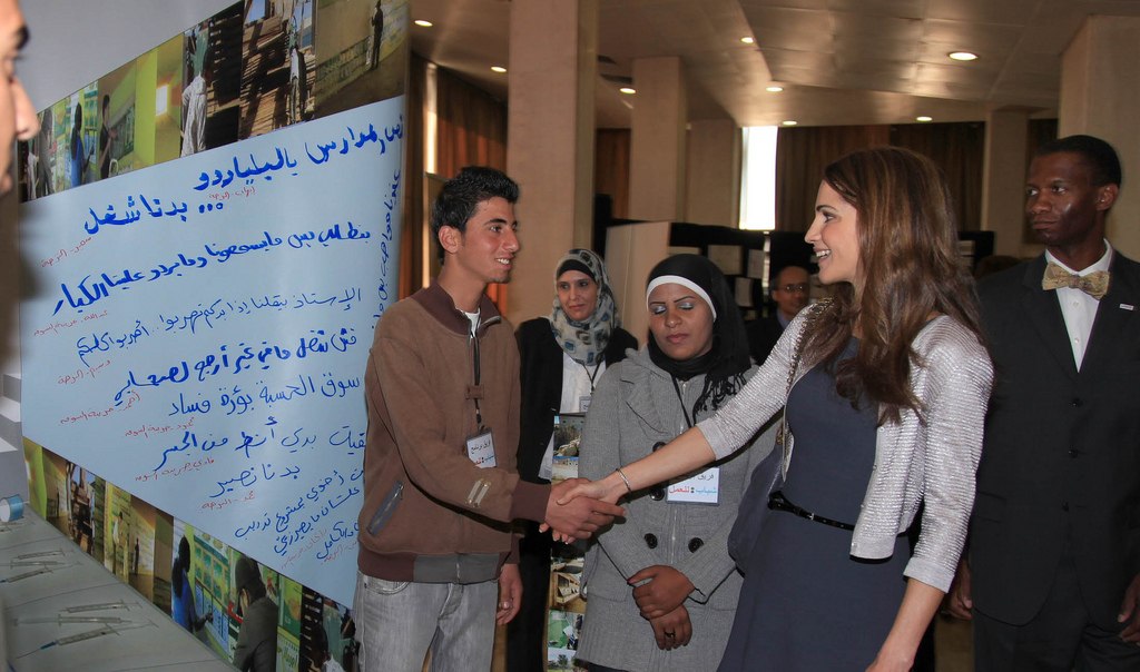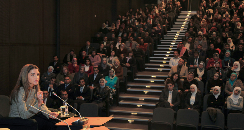 Queen Rania speaks at the Mobile World Congress in Barcelona, where she joined forces with the GSMA, the mobile industry’s leading institution, to announce the 1GOAL: Education for All Mobile Campaign in support of 72 million children still denied access to basic primary education.