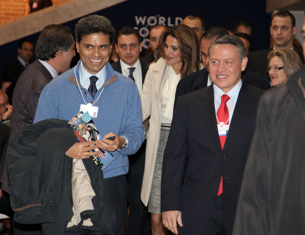 مع جلالة الملك عبدا لله وذلك قبل إجراء مقابلة مع شبكة السي ان ان أجراها الإعلامي فريد زكريا وذلك خلال المنتدى الاقتصادي العالمي
