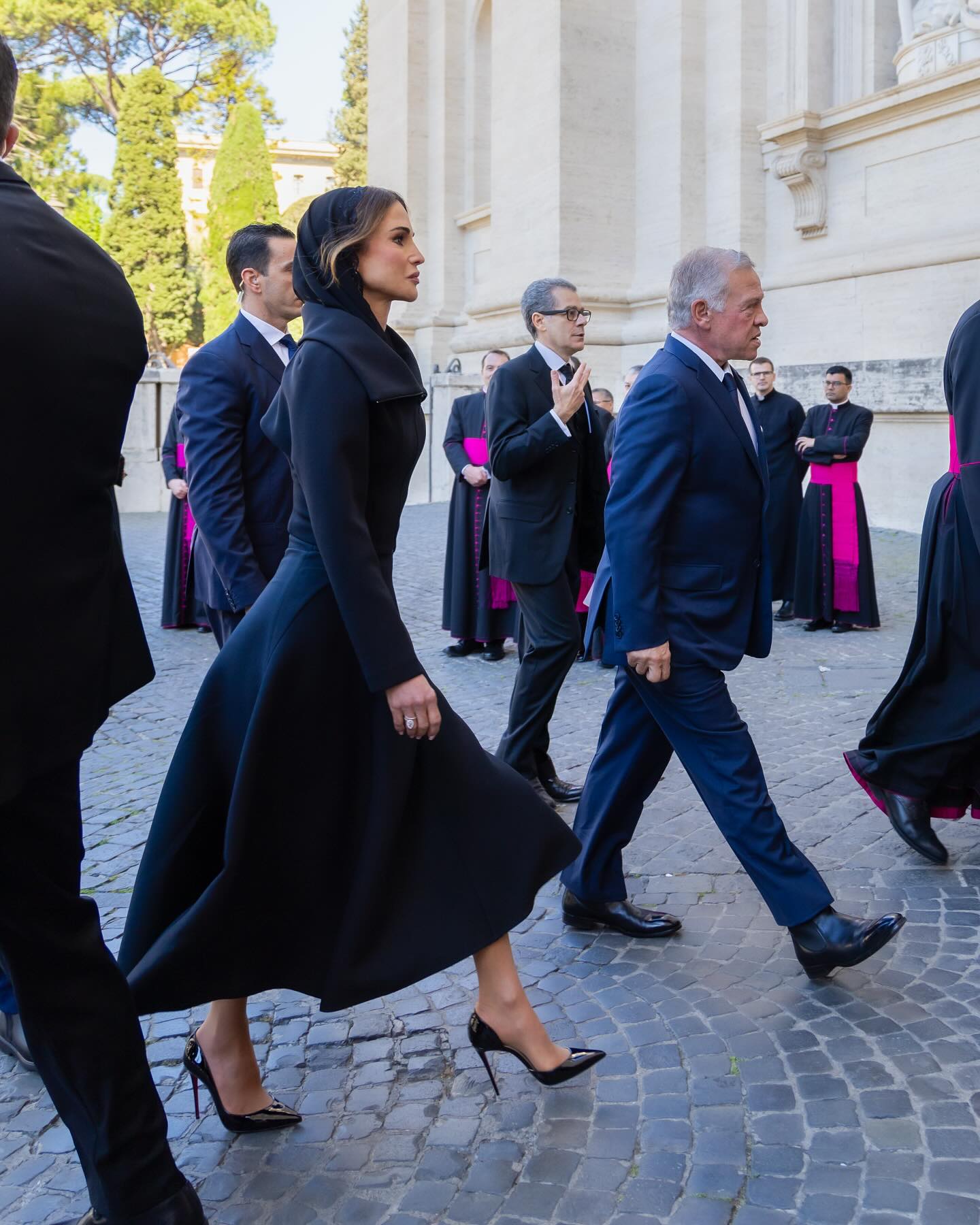 مع جلالة الملك لدى وصولنا اليوم إلى الفاتيكان لحضور جنازة البابا فرنسيس