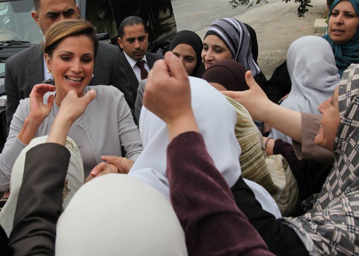 Her Majesty Queen Rania Al Abdullah with women during her visit to Abu Alanda