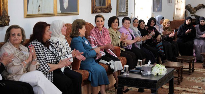 Her Majesty Queen Rania Al Abdullah meets with volunteers and beneficiaries of the programs provided by the Society for Development and Rehabilitation of the Rural Woman.