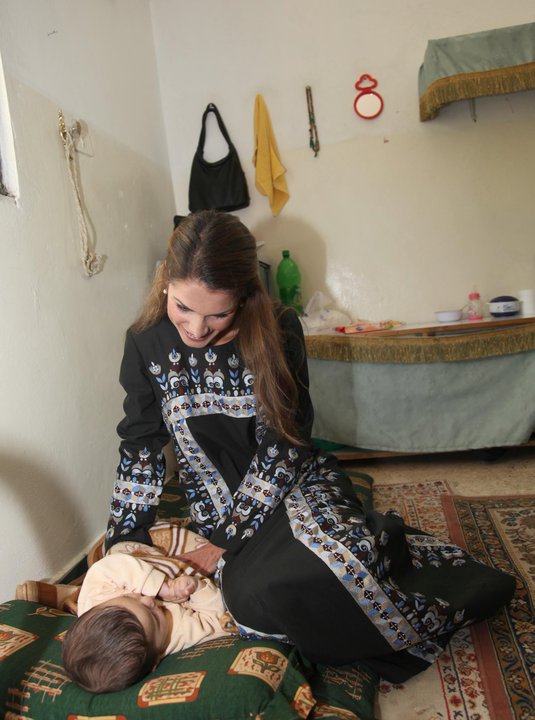 جلالة الملكة رانيا العبدالله خلال زيارة إلى حضانة الأمل التابعة لجمعية سيدات عين جنا.