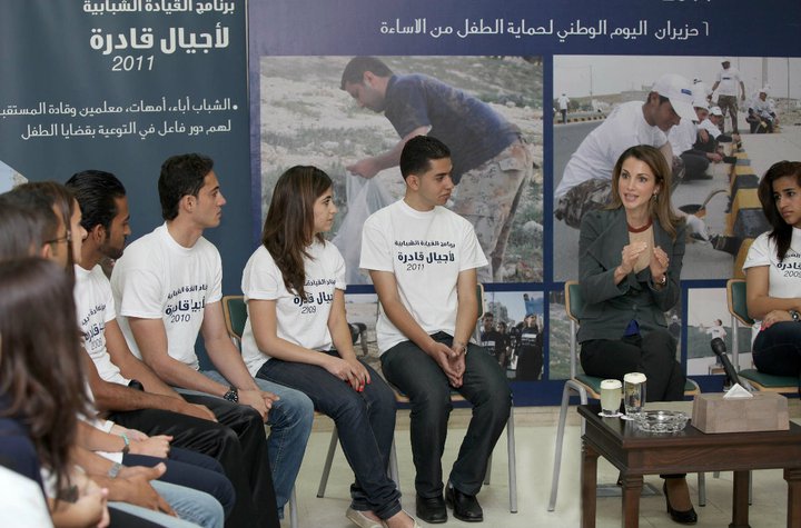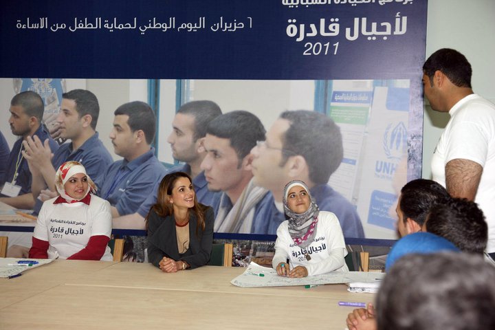 Her Majesty Queen Rania Al Abdullah at a workshop held for participants of the Youth Leadership Program.
