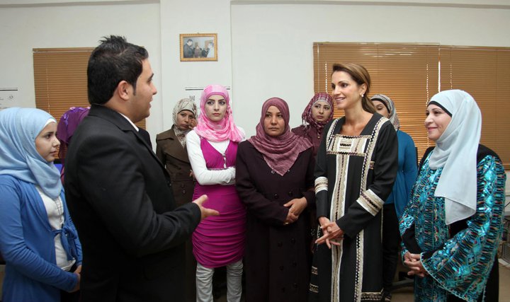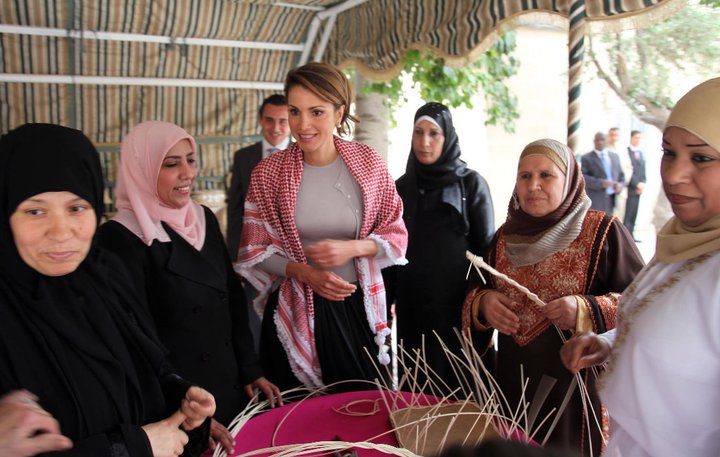 Her Majesty Queen Rania Al Abdullah during a visit to the Society for Development and Rehabilitation of the Rural Woman.