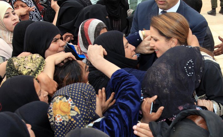 Her Majesty Queen Rania Al Abdullah with residents of the Ein Jannah area.