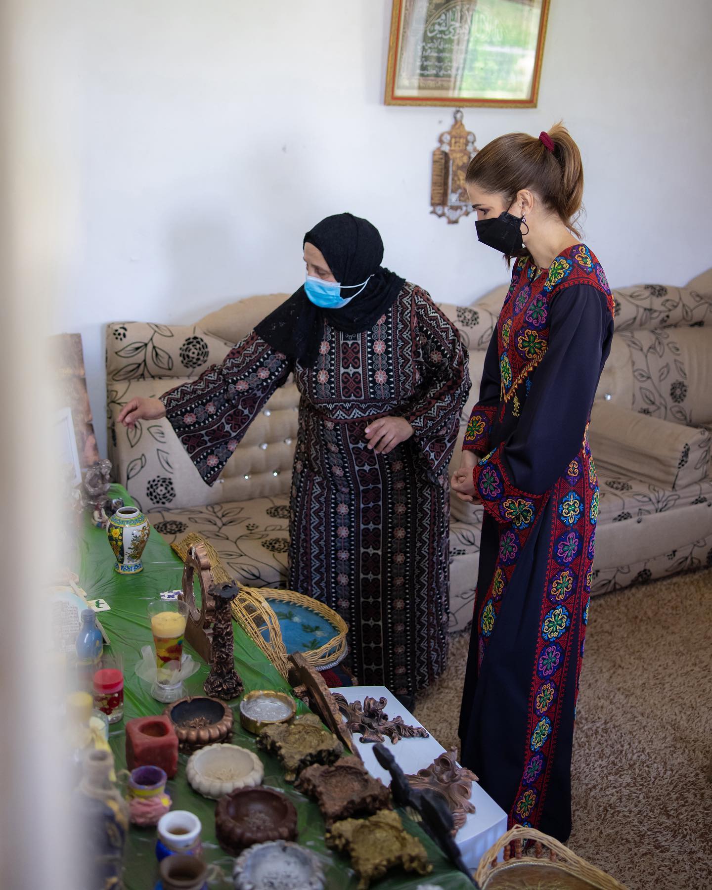 His Majesty King Abdullah II and Her Majesty Queen Rania checking the handicrafts made by the Productive Youth Program