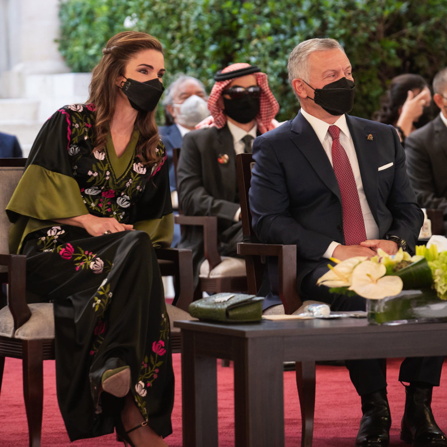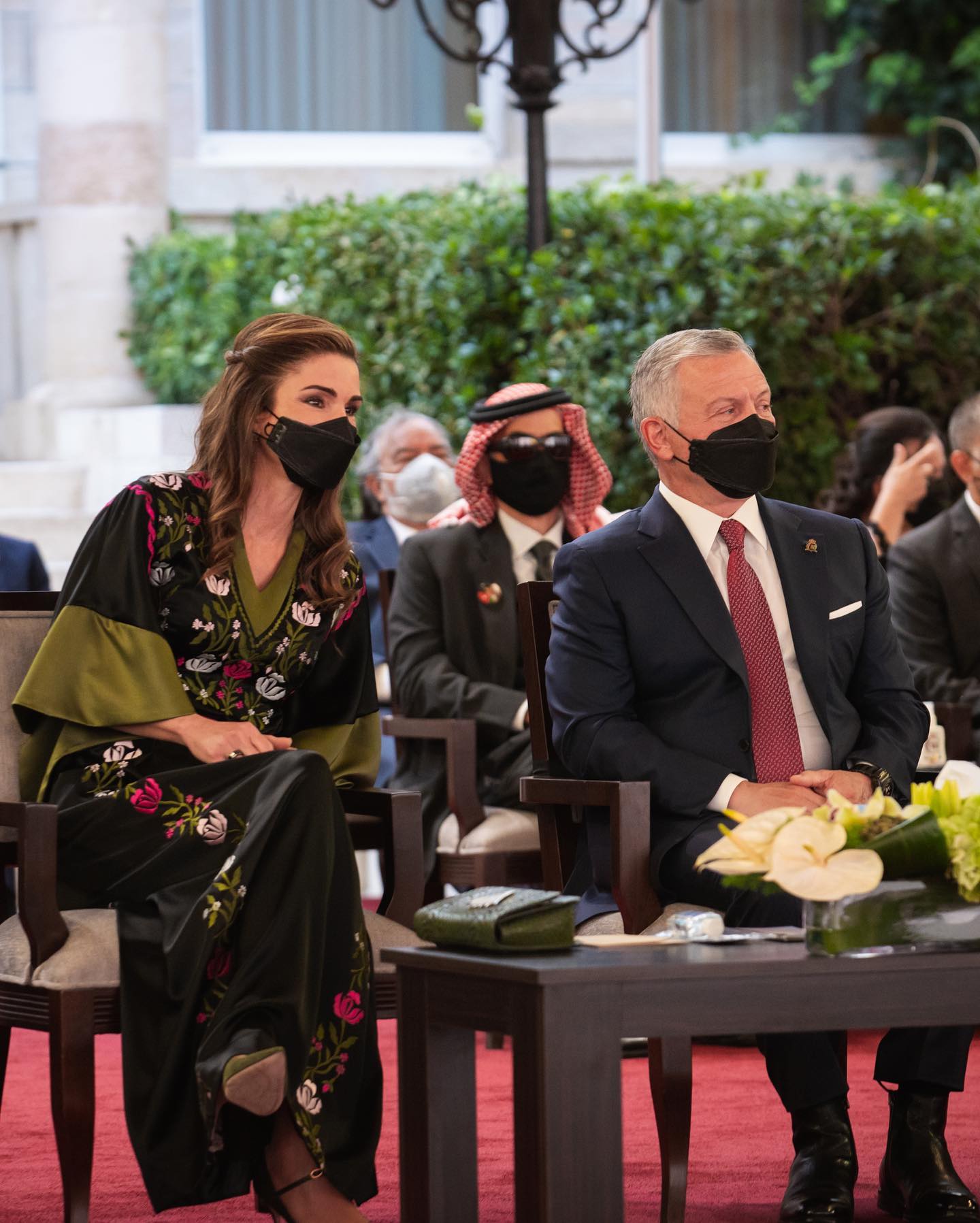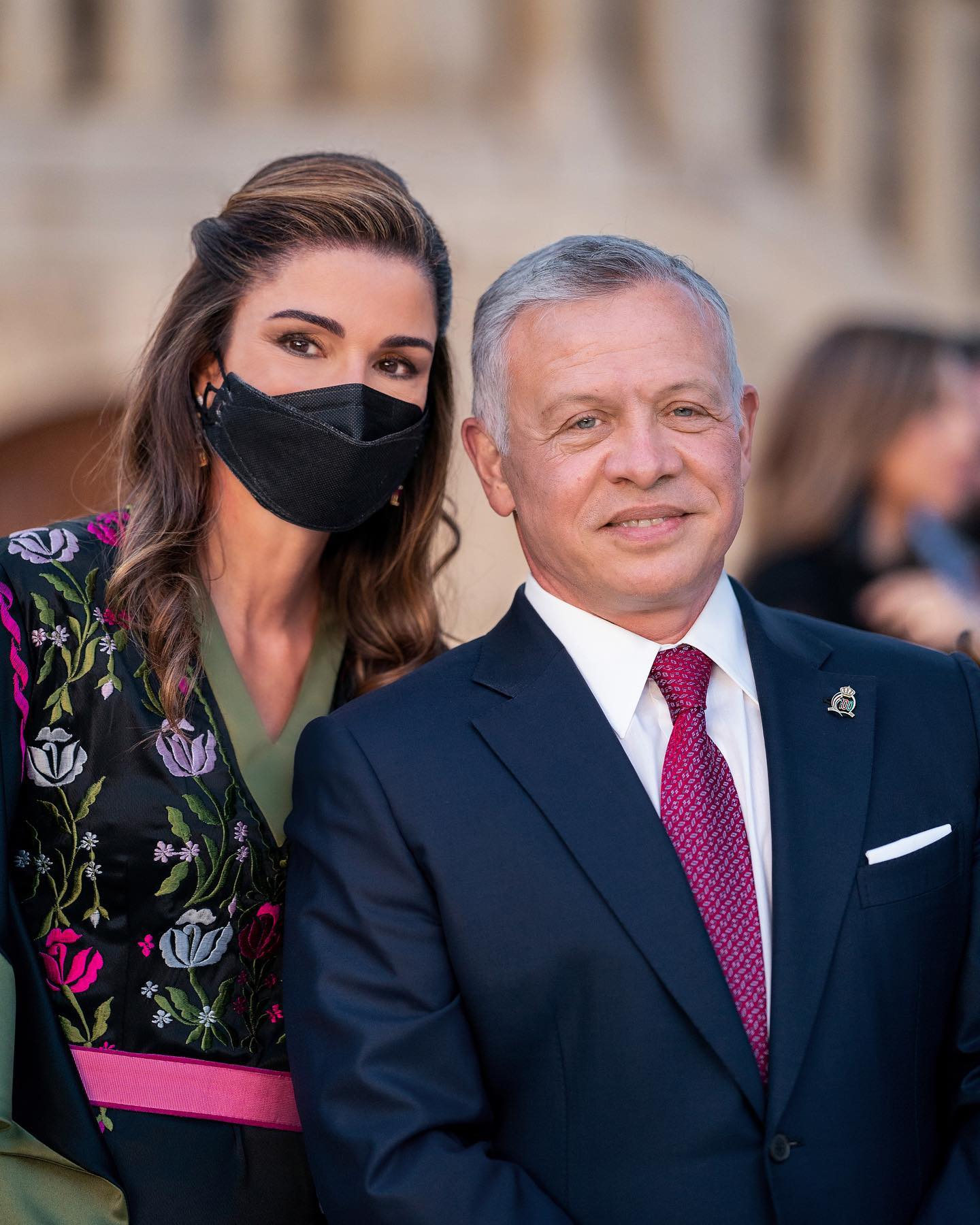 جلالتا الملك عبدالله الثاني والملكة رانيا وسمو الأمير الحسين ولي العهد خلال احتفال بمناسبة عيد استقلال المملكة الخامس والسبعين والذي أقيم في قصر رغدان