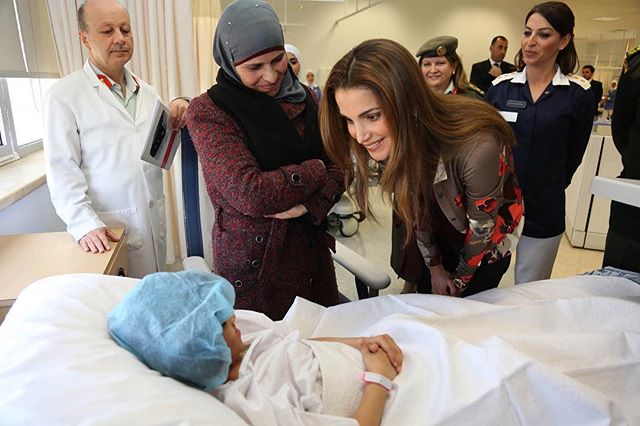 خلال تفقدي عدد من المرضى في مستشفى الملكة رانيا العبدالله للأطفال عام 2013 للاطمئنان على مستوى الخدمات العلاجية التي يتلقونها