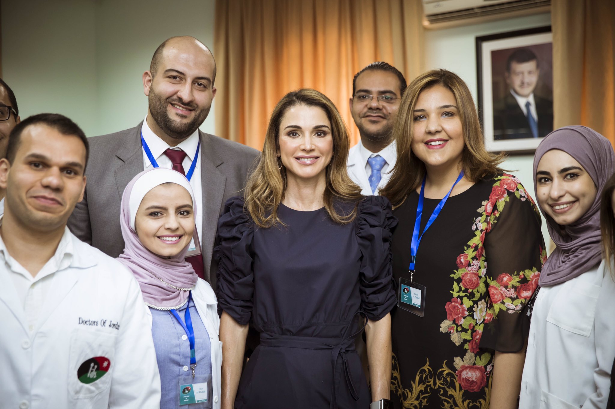 الملكة رانيا مع مجموعة من متطوعي أطباءك يا أردن أثناء تقديمهم خدمات طبية في السلط