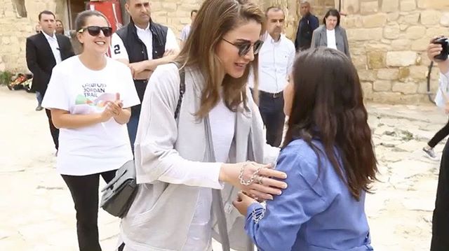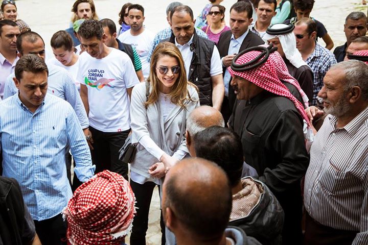 الملكة رانيا خلال جولة في قرية ضانا في الطفيلة ضمن رحلة المسير التي تنظمها جمعية درب الأردن