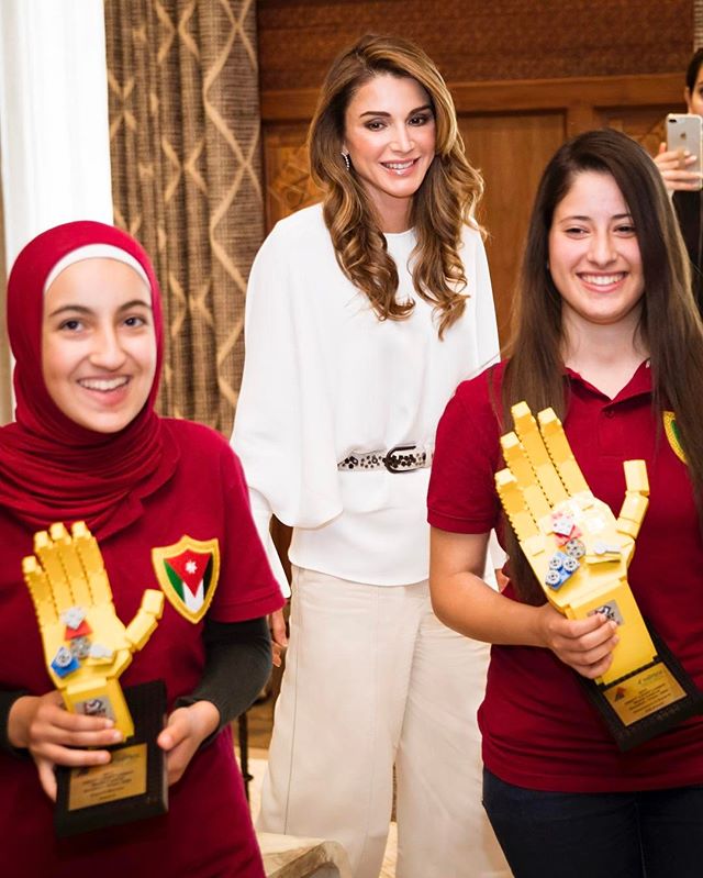 His Majesty and I are very proud of you! From my meeting today with the Robo Stars team from the King Abdullah II Secondary School for Excellence in Irbid - winner of the 2017 First Lego League robotics competition