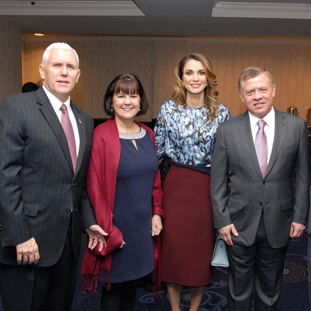مع جلالة الملك ونائب الرئيس الأمريكي مايك بنس وزوجته كارين خلال حفل إفطار الدعاء الوطني في العاصمة الأمريكية واشنطن يوم أمس