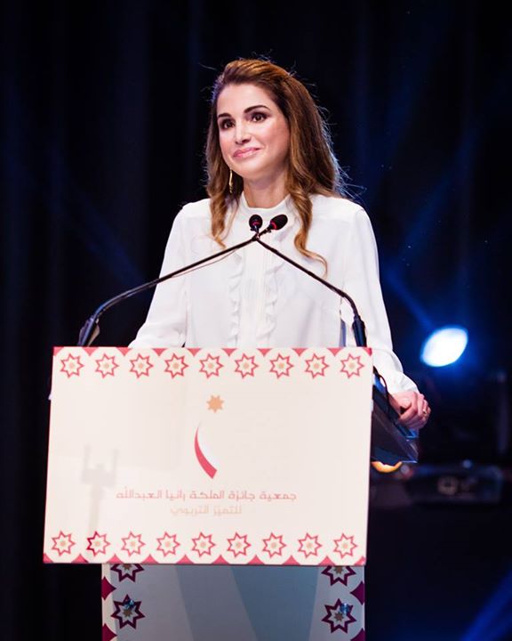 الملكة رانيا خلال احتفال جمعية جائزة الملكة رانيا العبدالله للتميز التربوي