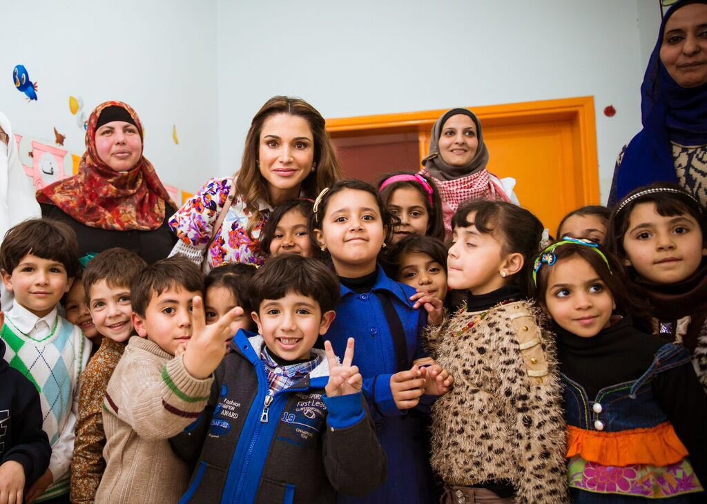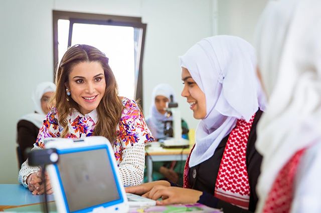 Queen Rania during a visit to Princess Taghreed School for Girls in Al Quwaismeh