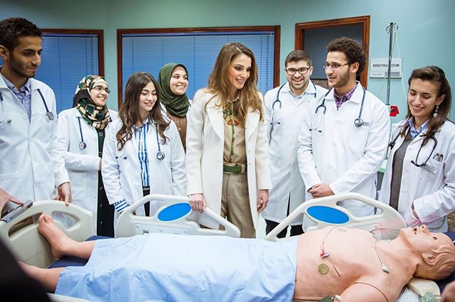 الملكة رانيا خلال زيارتها الى الجامعة الهاشمية