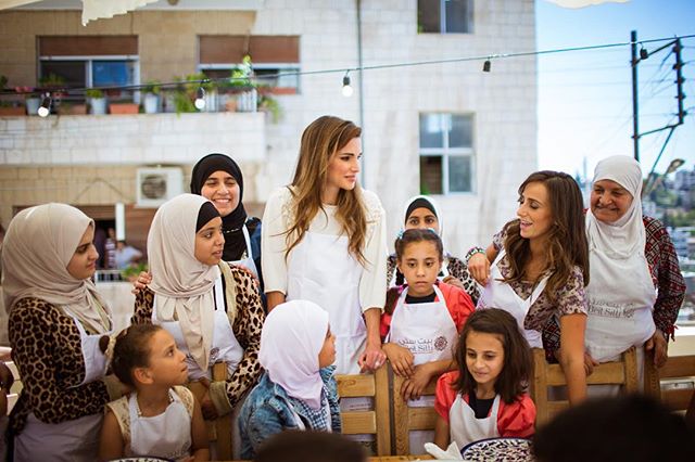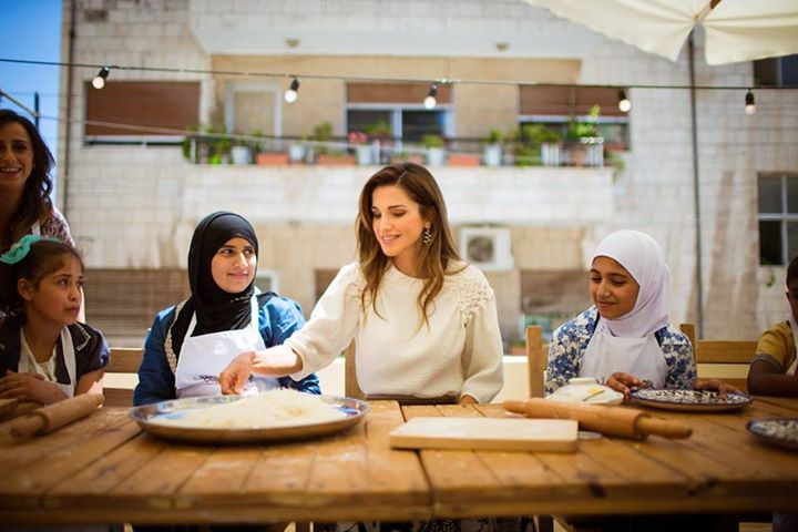 الملكة رانيا العبدالله تشارك مجموعة من الأطفال من مبرة الملك حسين في طبخ وتناول وجبة الغذاء في مطعم بيت ستي