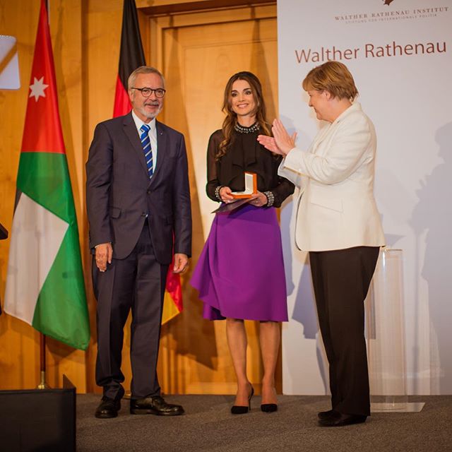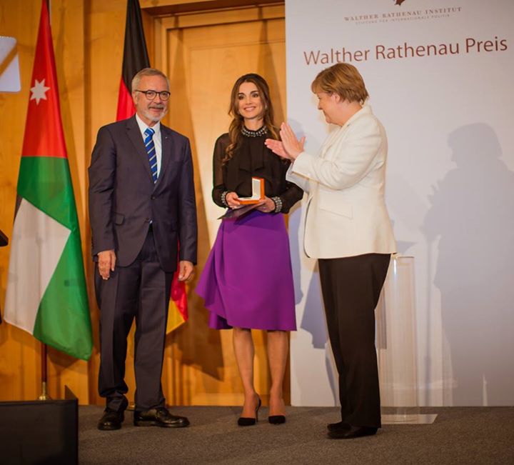 الملكة رانيا تتسلم جائزة والتر راثيناو في برلين من المستشارة أنجيلا ميركل- برلين، ألمانيا/ 17 أيلول 2015