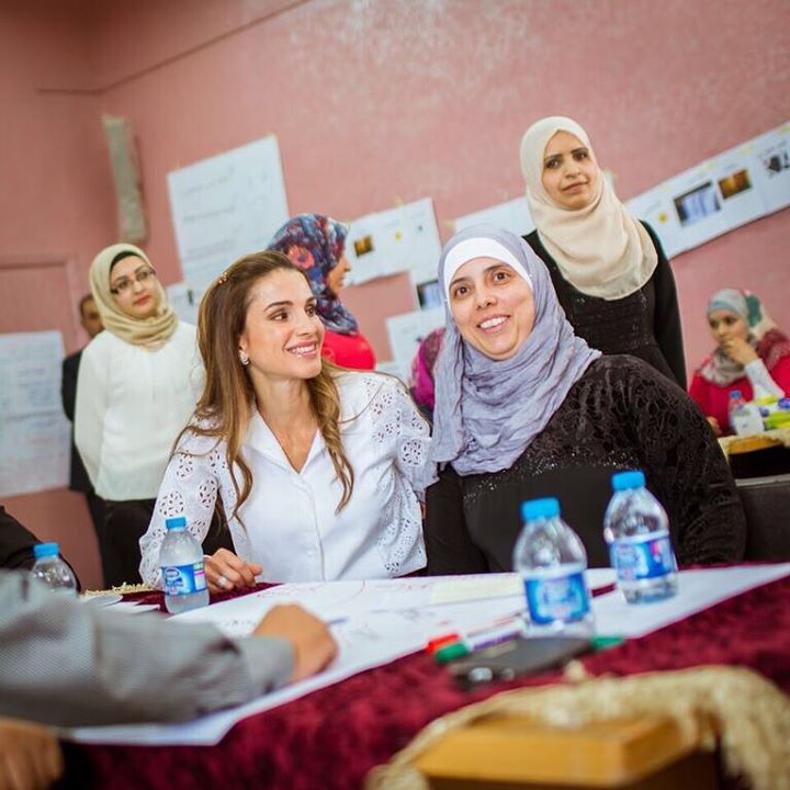 Her Majesty Queen Rania Al Abdullah during a meeting with a group of young entrepreneurs and beneficiaries of tasmeemMe.com