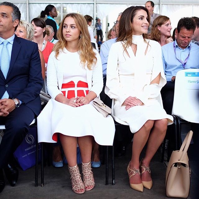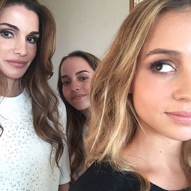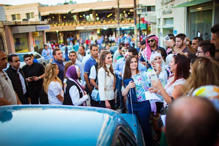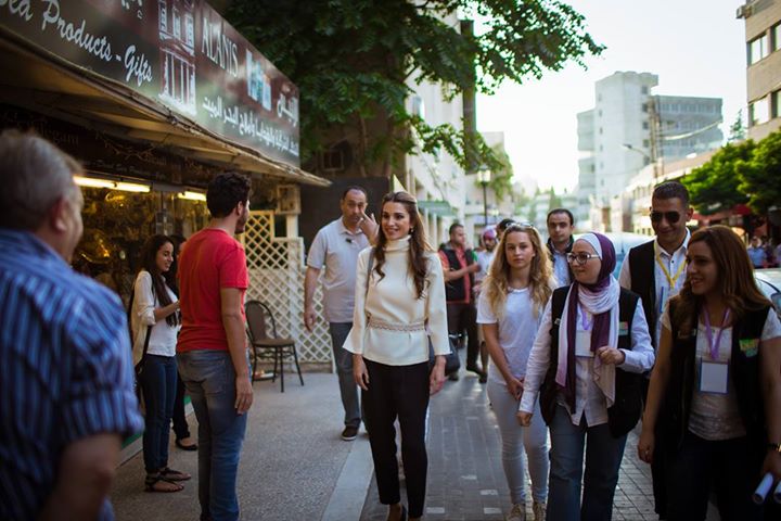 Her Majesty Queen Rania Al Abdullah with Her Royal Highness Princess Iman bint Abdullah during a walk around Rainbow St. with Out and About group