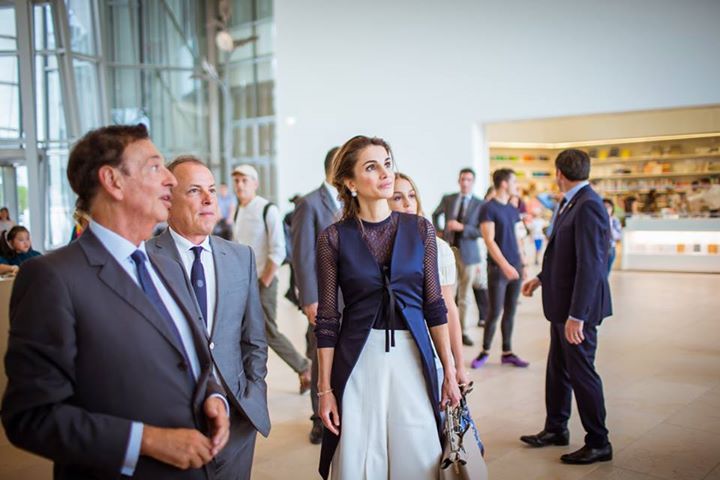 الملكة رانيا العبدالله والأميرة إيمان خلال زيارة إلى أحد المتاحف الفنية في باريس.
