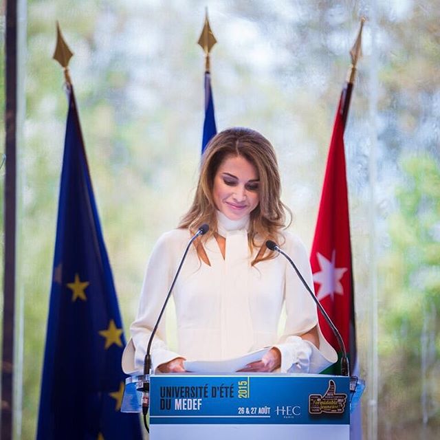 Queen Rania Al Abdullah at the opening of MEDEF’s youth-themed Summer University in Paris