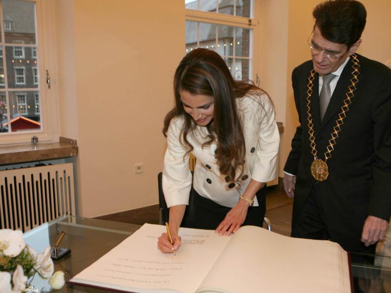 Her Majesty Queen Rania Al Abdullah met with Lord Mayor Joachim Erwin in Dusseldorf, Germany, to...